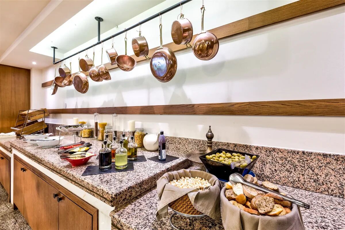 Posiłki serwowane w restauracji głównej w formie bufetu (kuchnia grecka) do posiłków podawana jest woda